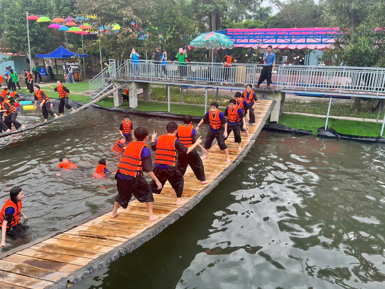 + Khu trò chơi nước: Tổ hợp cầu trượt, máng trượt và thảm nước tạo nên không gian giải trí mát mẻ và an toàn. Bạn có thể vừa vận động vừa tận hưởng làn nước trong lành giữa khung cảnh xanh mát. Sự kết hợp giữa nước và thiên nhiên tạo nên trải nghiệm vừa sôi động vừa thư thái.